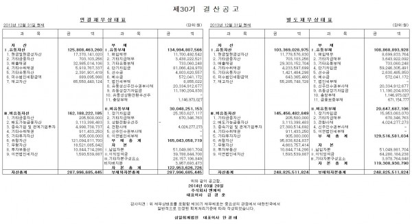 제30기 결산공고 페이지 정보 작성일 작성일 16-10-04 15:33 조회31,673회 16-10-04 15:33 | 조회 31,673회 관련링크 목록 본문 이전글 다음글 댓글목록 등록된 댓글이 없습니다. 목록