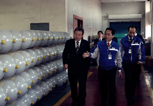 이날 어윤대 회장은 엔케이 박윤소 회장의 안내로 엔케이 공장 견학 및