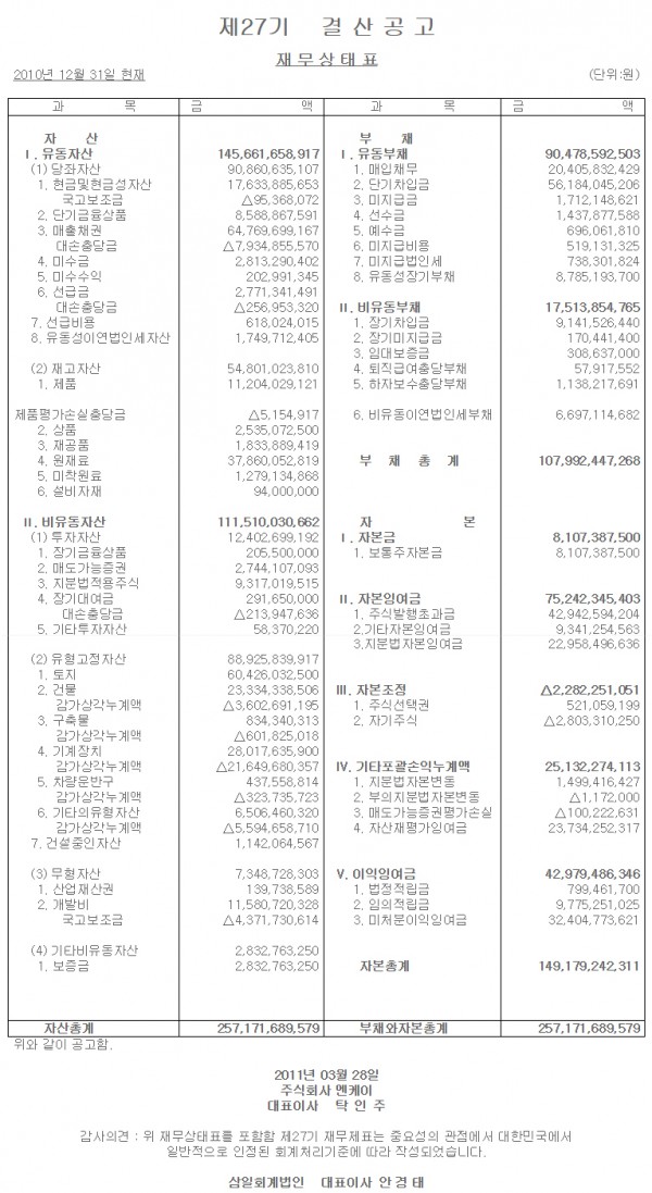 제27기 결산공고 페이지 정보 작성일 작성일 16-10-04 15:20 조회30,661회 16-10-04 15:20 | 조회 30,661회 관련링크 목록 본문 이전글 다음글 댓글목록 등록된 댓글이 없습니다. 목록